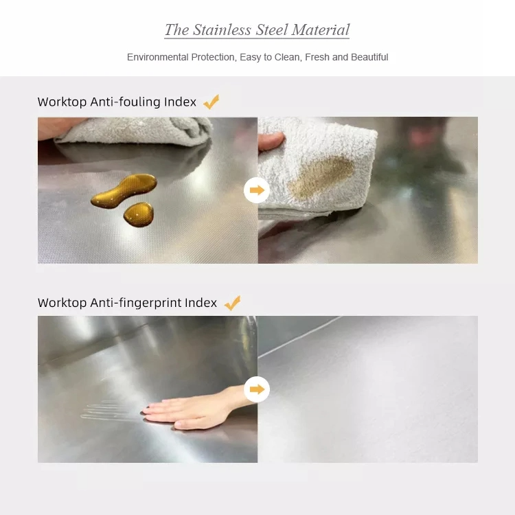 Stainless steel kitchen cabinets made with 304 stainless steel are known for their durability and sleek appearance.